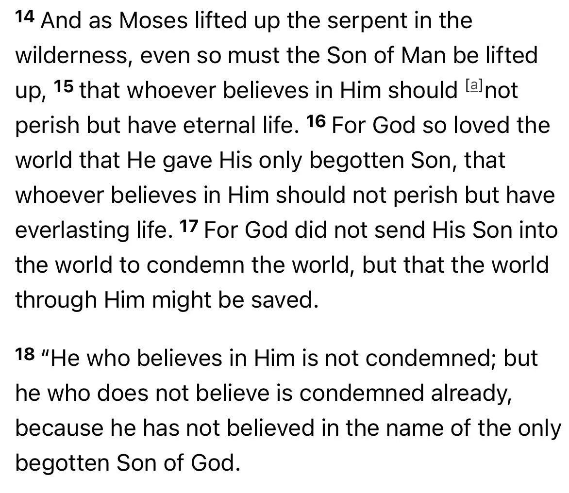 “And Moses lifted up the serpent in the wilderness, even so must the Son of Man be lifted up…”